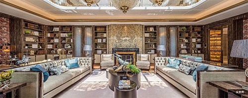 樾長安攜手國際頂級室內(nèi)設(shè)計團隊,基于個性化需求與理念,完成從建筑設(shè)計到室內(nèi)空間設(shè)計、精裝施工等一站式全流程的定制化,為世界層峰圈層匠筑一席一臻的定制藏品。4.5米層高、36米面寬,突破空間想象;300㎡私屬庭院,閑庭信步、處處皆景……