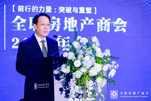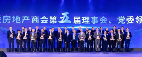 2023年,商會緊抓黨建工作與組織建設,團結行業力量,助力民營企業發展。在年會上,全國工商聯領導為全聯房地產商會第五屆理事會領導集體頒牌,并舉行了商會黨委揭牌儀式。