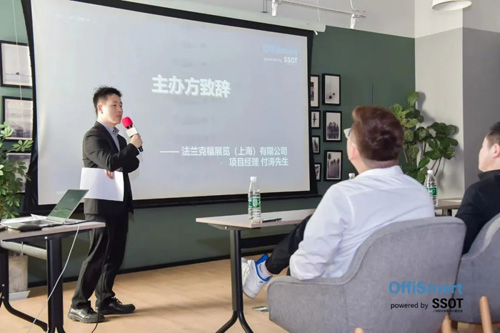 法蘭克福展覽(上海)有限公司代表付濤先生做開場致詞。“當(dāng)下正是重塑辦公實體場所的良機!借助新興技術(shù)或新型空間,構(gòu)建一種智能的、低碳的、可持續(xù)的、有人文關(guān)懷的辦公生態(tài),打造獨特、充實且富有吸引力的辦公體驗,讓員工的自我潛能得到激發(fā),讓各種發(fā)展?jié)摿Τ浞直虐l(fā)出來。”