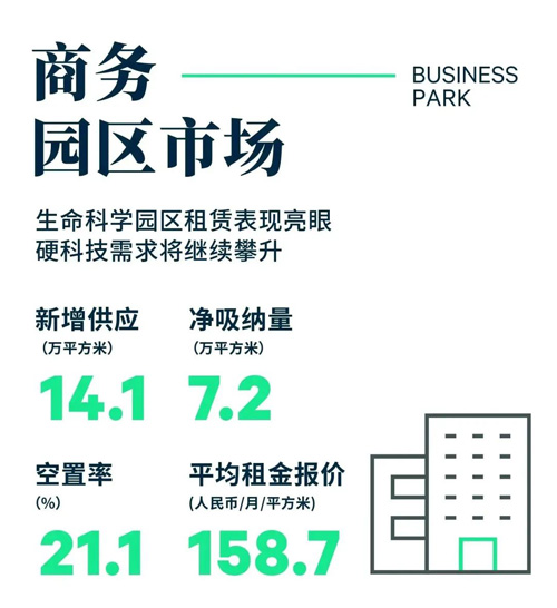 商務活動以及帶看量出現回暖跡象,但新租成交尚未完全恢復,疊加互聯網頭部企業繼續錄得騰退和整合,致使整體市場既有項目錄得凈吸納量-6.9萬平方米,空置率環比上漲0.6個百分點至21.1%。各子市場受其產業定位影響,租賃表現分化。長期以來受互聯網企業青睞的上地、中關村軟件園子市場空置率環比繼續攀升,但大面積騰退現象已經接近尾聲;而定位集成電路、生物醫藥、人工智能等高精尖科技研發的北清路子市場,既有項目保持韌性的同時新項目快速去化;其他子市場中,電子城子市場在互聯網、傳統制造行業新租需求疲軟和面積整合騰退增加下,凈吸納量亦錄得負值;而亦莊經濟開發區生命科學、裝備制造、汽車以及電子信息產業的大力發展,在推動產業園項目去化的同時,衍生產業對辦公類物業的新租需求以及相關專業服務企業設立區域分部的需求。整體來看,政府助力招商引資的項目或者具有特定產業導向的項目,在去化速度和租戶品質的優勢明顯,而純市場化租賃項目去化相對緩慢。