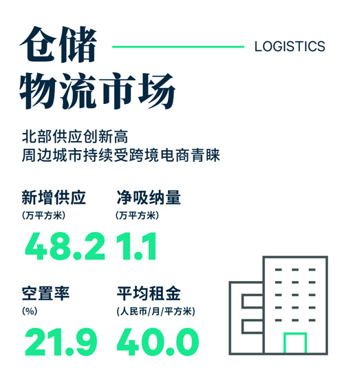 2023年第一季度,廣州迎來供應(yīng)高峰,而需求仍在逐步恢復(fù)中。三個(gè)項(xiàng)目共48.2萬平方米的高標(biāo)倉庫落成,是有記錄以來供應(yīng)最多的季度。新落成項(xiàng)目均位于廣州北部的花都區(qū)和從化區(qū),其中花都區(qū)供應(yīng)達(dá)到41.4萬平方米,占全部新增供應(yīng)的86%。需求方面,季內(nèi)錄得第三方物流的擴(kuò)張,但租賃市場(chǎng)活躍度仍有待提升。盡管國內(nèi)零售市場(chǎng)重啟,但出口表現(xiàn)仍未理想,1-2月以人民幣計(jì)價(jià)的商品出口總值同比下降20.6%,影響了與出口相關(guān)的倉儲(chǔ)需求。因此,全市高標(biāo)倉空置率仍持續(xù)攀升,環(huán)比上升12個(gè)百分點(diǎn)至季末的21.9%。但就區(qū)域而言,黃埔區(qū)錄得最為顯著的空置改善,空置率環(huán)比下降4.6個(gè)百分點(diǎn)至季末的8.8%。租金方面,空置壓力較大的廣州北部,以及受出口放緩影響的南沙,均有項(xiàng)目下調(diào)租金報(bào)價(jià)。全市租金受此影響,環(huán)比下降0.6%至季末的每月每平方米40.0元。