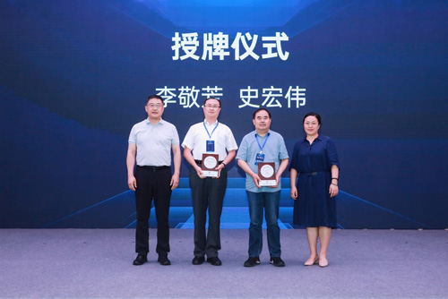 全聯(lián)房地產(chǎn)商會秦晶副秘書長和邊東昱副秘書長為全聯(lián)房地產(chǎn)商會節(jié)能門窗分會會監(jiān)事長、亞薩合萊國強(qiáng)(山東)五金科技有限公司總經(jīng)理李敬芳和為全聯(lián)房地產(chǎn)商會節(jié)能門窗分會執(zhí)行監(jiān)事長、天津新艾隆科技有限公司董事長史宏偉授牌。