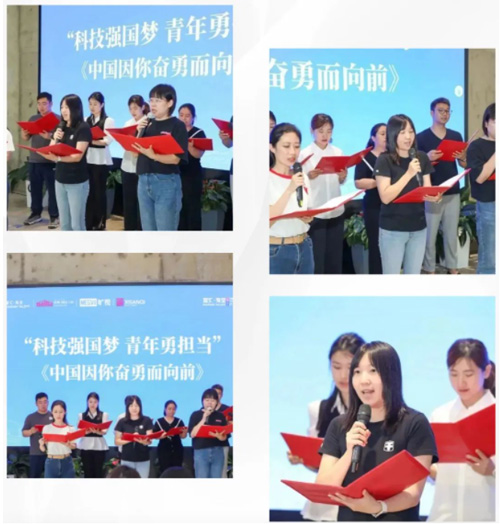 來(lái)自金隅文化科技公司、曠視科技以及金隅智造工場(chǎng)黨群服務(wù)中心的員工們現(xiàn)場(chǎng)朗誦《中國(guó)因你奮勇而向前》,聲情并茂表達(dá)出園區(qū)青年人才對(duì)科研工作的熱愛(ài)和深厚的情感,用飽滿的熱情展現(xiàn)科研人才不畏艱難的科研精神。