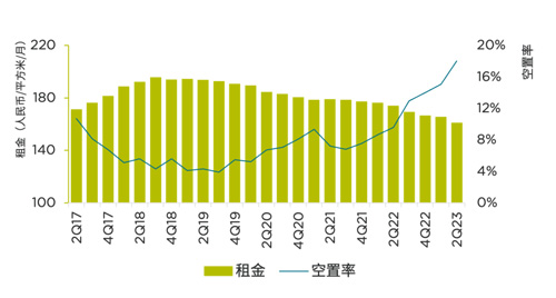 二季度,琶洲迎來新項目的集中入市,推動上半年全市新增供應達39.8萬平方米,是過去五年同期的最高水平。受新增供應的刺激,上半年全市凈吸納量錄得8.1萬平方米。由于租戶仍持審慎的租賃策略,成交面積普遍偏小。全市空置率持續走高至18.0%。全市平均租金環比下降2.8%至每月每平方米161.0元。