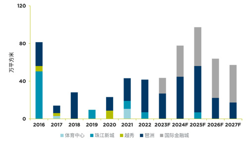 隨著去年延期交付的項目陸續完成入市,廣州甲級寫字樓市場預計將在今年迎來供應高峰。根據建設進度,年內全市還將有43.4萬平方米新項目投入使用。競爭加劇的市場環境對業主的專業運營能力提出了更高的要求,也將為企業帶來更多辦公選擇。