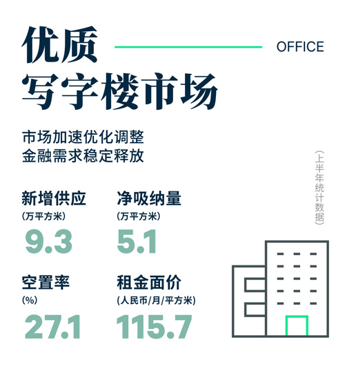 2023年上半年,南京寫字樓市場迎來一個新增供應(yīng)交付,位于河西板塊的金鷹世界B座,體量約9.3萬平方米。經(jīng)濟增長動能勢頭放緩,企業(yè)降本增效以尋求高質(zhì)量可持續(xù)發(fā)展,推動租賃市場進入優(yōu)化調(diào)整期,搬遷需求主導(dǎo)之下,二季度凈吸納量錄得1.5萬平方米,上半年累計值達(dá)5.1萬平方米,較去年同期水平提升39.3%。受益于新增供應(yīng)項目產(chǎn)業(yè)定位明確、價格優(yōu)勢明顯、去化表現(xiàn)良好的積極作用,全市空置率環(huán)比下降0.4個百分點,較去年年末上漲0.5個百分點至27.1%。