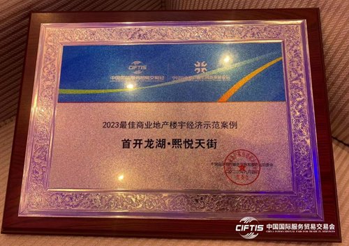 2023年9月4日,服貿(mào)會(huì)唯一商業(yè)地產(chǎn)領(lǐng)域重點(diǎn)論壇--中國(guó)商業(yè)地產(chǎn)服務(wù)創(chuàng)新發(fā)展論壇如期舉辦。論壇公布了"2023最佳商業(yè)地產(chǎn)樓宇經(jīng)濟(jì)示范案例",北京熙悅天街憑借其出色的商業(yè)實(shí)力與表現(xiàn),榮獲此殊榮。