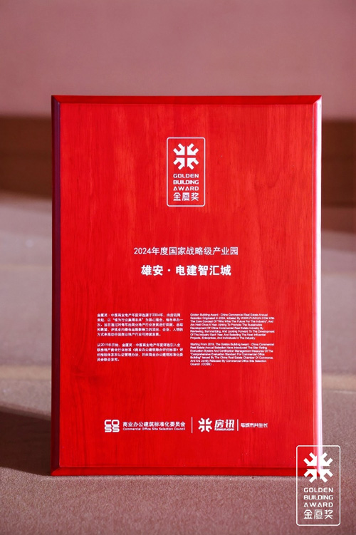 中國寫字樓產業園發展論壇源于2004年12月,由房訊網發起,聯合全聯房地產商會權威主辦,已連續成功舉辦21屆年會,是中國商業地產領域規格最高、規模最大、影響最廣的專業論壇之一。據悉,“金廈獎”評選活動建立了全面的評價體系,對參選的商業地產企業項目進行廣泛測評與深入比較,本著"客觀公正、全面權威"的評審原則,遴選學界、金融界、專業機構專家組成強大的評審陣容,分類推選出樓盤、企業、人物大獎和其他獎項,上榜項目將成為未來一年中引領中國商辦地產發展潮流的核心力量。雄安·電建智匯城項目此次獲2024年度國家戰略級產業園殊榮,不僅是對雄安·電建智匯城項目品質和創新實力的見證,也代表了行業對雄安·電建智匯城項目綜合實力的肯定。