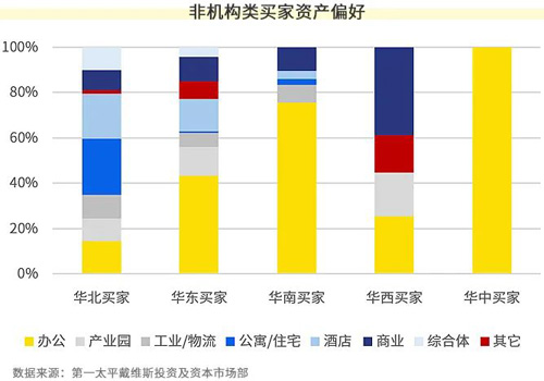 縱觀全年,非機構(gòu)類買家來源仍以華東、華北及華南為主,華北買家資產(chǎn)偏好更為多元,來自華東及華南的買家則更為偏好購入辦公類資產(chǎn)用于自用或投資。