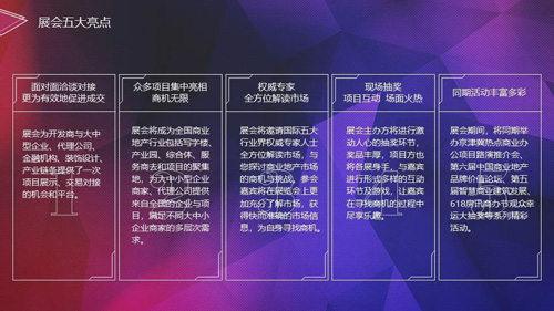 中國商業(yè)地產投資專業(yè)展覽會源于2011年,是一個針對商業(yè)地產投資商、開發(fā)商、服務商和使用者在設計、開發(fā)、融資、管理、經(jīng)營和服務等環(huán)節(jié)的商務對商務的工作性展覽會,已連續(xù)成功舉辦19屆,持續(xù)引領商業(yè)地產營銷招商與運營管理的創(chuàng)新與進步。