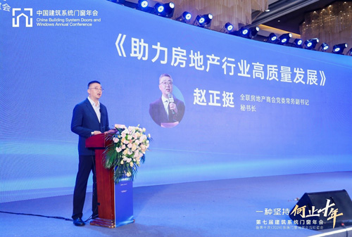 接著,全聯房地產商會黨委常務副書記、秘書長趙正挺上臺致辭,做了《穿越周期;洞見未來-助力房地產行業高質量發展》精彩演講,趙秘書長在演講中指出:我國城鎮化和基礎設施建設已初步完成,未來新建建筑的增長空間十分有限,房屋開發建設將以老舊建筑拆除重建為主,以供給結構優化的增量開發為輔,高質量發展將成為房地產行業的主旋律。高質量發展的內在要求不僅是產品質量和服務質量的提高,還包括市場環境、機制等方面的優化。對于我們系統門窗行業而言,需要站在房地產發展新的歷史起點上,面對挑戰,抓好機遇,在原有2B市場的基礎上,面向城市更新大力拓展2C市場,以綠色發展引領和優化市場環境。