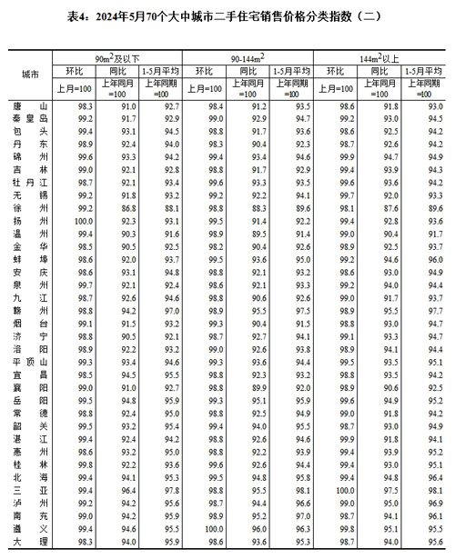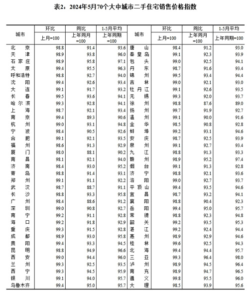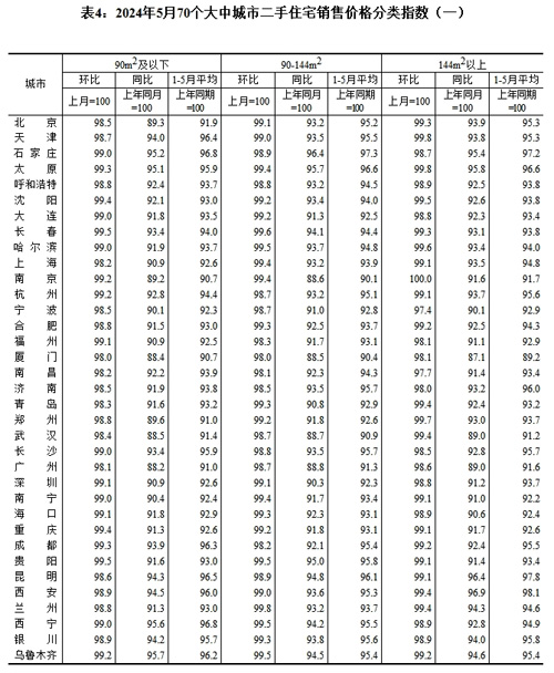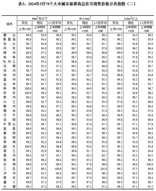 [提要]2024年5月份70個大中城市商品住宅銷售價格變動情況