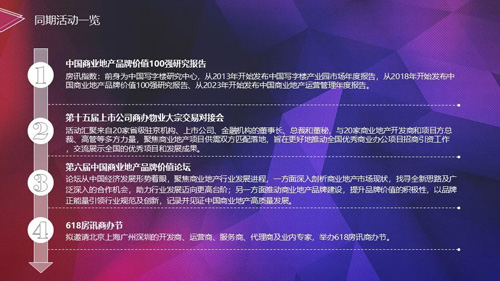 展覽會期間,第六屆中國商業地產品牌價值論壇THE 6th CHINA COMMERCIAL REAL ESTATE BRAND VALUE SUMMIT將同期舉辦,主題為“品牌向上的力量”,并發布《2024中國商業地產品牌價值報告》。