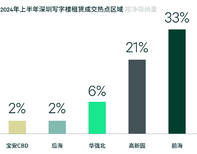 從需求成交的區(qū)域分布來看,科技企業(yè)擴(kuò)張?zhí)崴僖约靶略龉⿷?yīng)助推雙重作用下,前海和高新園成為全市前兩大需求片區(qū),貢獻(xiàn)全市一半的凈吸納量。