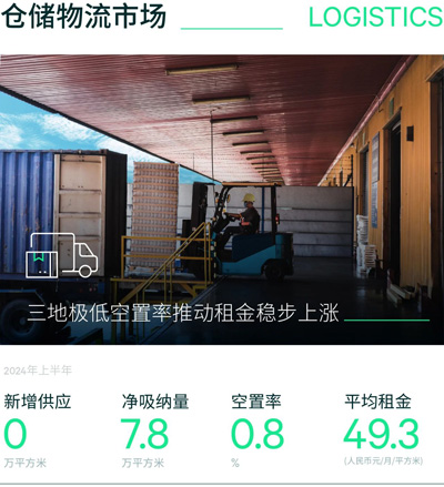 2024年第二季度無新增供應(yīng)入市,部分存量項(xiàng)目的空置率進(jìn)一步改善,令整體市場空置率環(huán)比下降2.3個(gè)百分點(diǎn)至0.4%的市場低位,吸納量共計(jì)4.5萬平方米。市場的主要需求來自跨境電商,此外還錄得少量第三方物流的需求。2024年上半年,在以西音為首的跨境電商的強(qiáng)勢擴(kuò)張帶動下,整體市場需求井噴,凈吸納量高達(dá)76萬平方米,創(chuàng)歷史之最。強(qiáng)勁需求推動下,市場平均租金半年度增長2.1%至每月每平方米36.7元,漲幅高出去年同期0.6個(gè)百分點(diǎn)。