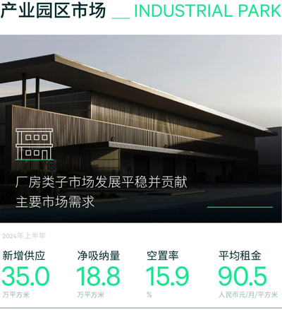 受經(jīng)濟(jì)放緩導(dǎo)致的需求收縮影響,整體市場平均租金半年度下降1.1%至每月每平方米90.5元。不同類型子市場租金表現(xiàn)分化,廠房類園區(qū)租金保持平穩(wěn)在每月每平方米45.4元,半年度無變化。研發(fā)辦公園子市場受需求波動影響,租金半年度下降0.5個(gè)百分點(diǎn)至每月每平方米72.2元。而工業(yè)寫字樓市場因業(yè)主以價(jià)換量策略的持續(xù),平均租金半年度下降1.8%至每月每平方米140.3元。