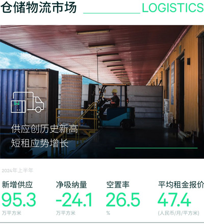 2024年上半年上海倉儲物流市場錄得3個新項目入市,累計達95.3萬平方米,錄得歷史新高。其中,二季度的新宜金山銀河一號-A地塊項目帶來70萬平方米的新增面積。