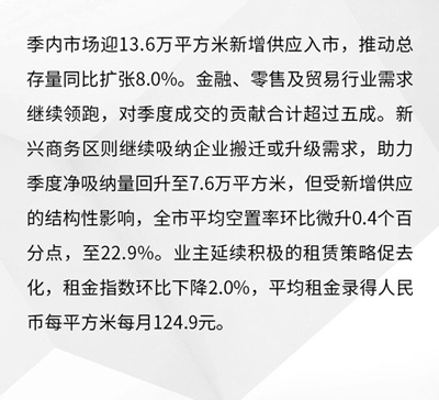 第一太平戴維斯(Savills)發(fā)布2025第三季度中國辦公樓市場回顧及展望。中國寫字樓市場仍映射出宏觀經(jīng)濟(jì)的兩速格局:新經(jīng)濟(jì)產(chǎn)業(yè)迅速擴(kuò)張,傳統(tǒng)行業(yè)持續(xù)承壓。科技與制造企業(yè)偏向自用或遷入產(chǎn)業(yè)園區(qū),傳統(tǒng)企業(yè)則縮減面積、尋求更高性價(jià)比。