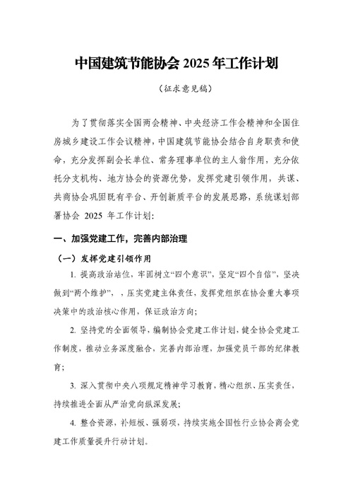 中國建筑節(jié)能協(xié)會2025年工作計劃