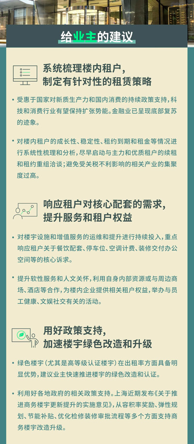 我們認(rèn)為可持續(xù)發(fā)展仍是企業(yè)房地產(chǎn)的中長期趨勢。但值得注意的是,在已設(shè)定零碳目標(biāo)的租戶中,今年有1/5的企業(yè)表示考慮推遲或正在重新審視原定目標(biāo),這或與近期歐美地區(qū)清潔能源、新能源汽車等領(lǐng)域的相關(guān)政策變化,以及企業(yè)經(jīng)營預(yù)期和戰(zhàn)略目標(biāo)的調(diào)整有關(guān)。