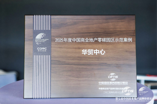 在第七屆中國商業地產品牌價值論壇上,華貿憑借零碳智慧商圈實踐獲"2025年度中國商業地產零碳園區示范案例"。