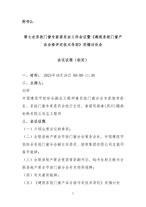 關(guān)于邀請出席“第七次系統(tǒng)門窗專家委員會工作會議暨《建筑系統(tǒng)門窗產(chǎn)品合格評定技術(shù)導(dǎo)則》定稿討論會的函
