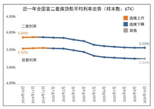 10月19日,融360大數(shù)據(jù)研究院對全國41個(gè)重點(diǎn)城市674家銀行分支機(jī)構(gòu)房貸利率的監(jiān)測數(shù)據(jù)顯示,2020年10月(2020年9月20日~2020年10月18日),全國首套房貸款平均利率為5.24%,二套房貸款平均利率為5.55%,均與上月持平。