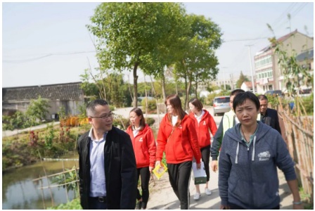 △ 陸家橋村村委書記朱榮斌向派米雷公益服務(wù)中心的志愿者們介紹在籍老人們的情況