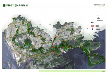 2009年,深規院承擔了《深圳市綠道網專項規劃》的編制工作,作為全國的首個市級綠道網專項規劃,項目首次打破資源配置導向下“盆景式”的生態保護模式,規劃構建“區域、城市、社區”三級綠道的網絡體系,提出未來深圳市將建成300公里區域綠道,500公里城市綠道、1200公里社區綠道,整體形成銜接有序、連接便捷的“四橫八環”型綠道網絡結構,以此構建與城市山海格局、空間結構和功能布局相互契合的總體結構。