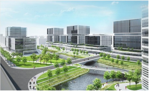 漕河涇趙巷科技綠洲首批結(jié)構(gòu)封頂?shù)貕K,容積率2.5,包含5棟小高層辦公載體,2棟7層,3棟12層。聘請(qǐng)國(guó)際著名建筑設(shè)計(jì)團(tuán)隊(duì)GMP擔(dān)綱設(shè)計(jì),建筑設(shè)計(jì)注重“綠色、生態(tài)”,充分利用青浦江南水鄉(xiāng),河網(wǎng)密布特色,采用大塊面玻璃幕墻,展現(xiàn)“與水為鄰”的科技園區(qū)環(huán)境,結(jié)構(gòu)設(shè)計(jì):梁、板、樓梯采用PC結(jié)構(gòu),樓板采用預(yù)應(yīng)力雙T板,是“大空間”辦公樓設(shè)計(jì)施工的典范。