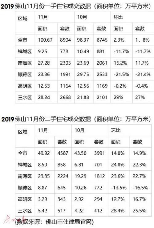 佛山市住建局于去年12月11日發(fā)布11月一手房和存量房的成交數據,記者對比了去年11月和10月一、二手房佛山五區(qū)的成交數據。此前,佛山多個靠近廣州的鎮(zhèn)街對外地人購房實施限制,需要連續(xù)一年以上的個稅或社保繳交記錄。去年11月29日,佛山人才新政實施,本科以上學歷的購房者無須個稅或社保記錄即可享受首套房購房待遇。