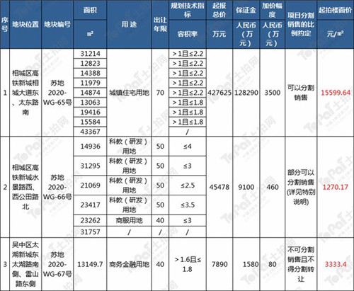 2020年10月,江蘇東茂商業發展有限公司(股東為京東、平安不動產及中南)以底價42.76億元的價格獲取了蘇州相城區蘇地2020-WG-65號地塊,樓面價15600元/平米。該地塊為住宅用地,物業可分割銷售。