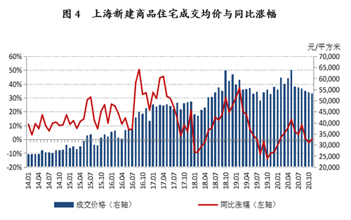 自今年7月開始,杭州、深圳、沈陽等十幾個熱點城市收緊樓市調控。8月底住建部、央行更出臺了約束開發商融資的“345新規”。參加7月24日座談會、8月26日城市會商會的14個城市中,除了北上廣和長沙以外10個城市全部出臺了新政策,而深圳政策最為嚴苛。9月上海落戶政策松動以及11月上海政府發布年內第二次落戶優化政策,未來也會對房地產市場需求端產生一定程度的影響。隨著“345新規”的推行,各大房企必將面臨融資結構的明顯調整。11月“十四五”規劃建議的發布,“房住不炒”仍是未來五年全國樓市調控的主基調,也是上海以及各地方因城施策不可動搖的根本。