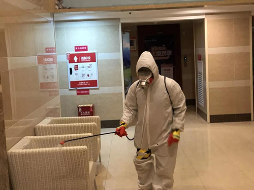 金科物業(yè)工作人員正在給公共區(qū)域消毒