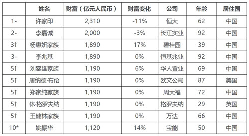 3月20日,胡潤研究院今日發布《2020胡潤全球房地產富豪榜》(Hurun Global Real Estate Rich List 2020)。上榜企業家主要財富來源于房地產領域,上榜門檻為十億美金,財富計算截止日期為2020年1月31日。