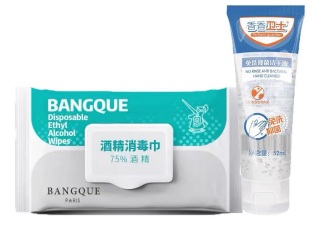 75%酒精消毒濕巾(80抽)+免洗抑菌酒精洗手液(52ml)