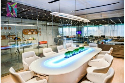 在創(chuàng)意接待區(qū),來(lái)賓們可以通過(guò)沙盤和多媒體音影設(shè)備全方位了解項(xiàng)目信息;移步閱談辦公空間,則可以在多場(chǎng)景辦公需求中自由切換,全方位感受未來(lái)5.0辦公體驗(yàn);在閱讀休閑空間,則可以手捧咖啡,邂逅一本書籍沉淀自我……未來(lái)辦公與生活,在此得以打破藩籬,融為一體。