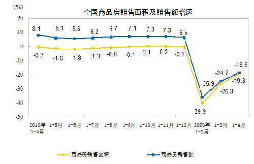 5月15日國家統(tǒng)計局發(fā)布2020年1—4月份全國房地產(chǎn)開發(fā)投資和銷售情況。