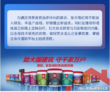 業之峰是裝企中的佼佼者,也是東方雨虹的戰略合作伙伴。業之峰董事長張鈞表示,密切的合作源于雙方對自身產品的堅定和信念。在他看來,三流企業做產品,二流企業做品牌,一流企業要做的是引領標準。引領是頭部企業的擔當和責任,而業之峰和東方雨虹都是這樣的企業。