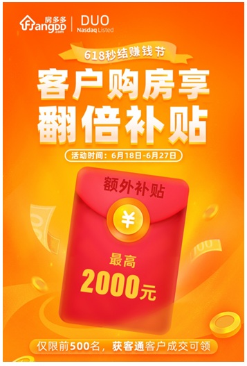 6月5日起,房多多“618省錢購房節(jié)”活動(dòng)在全國近百座城市拉開帷幕,以新房補(bǔ)貼為切入點(diǎn),平臺(tái)提供最高20000元購房補(bǔ)貼,預(yù)計(jì)全月將發(fā)放高達(dá)一億的購房補(bǔ)貼券,回饋置業(yè)消費(fèi)者。