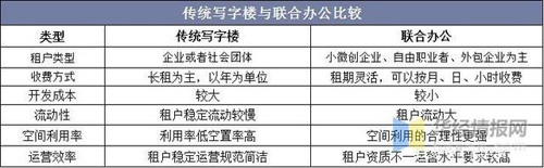 在前期開發方面,傳統的商務寫字樓前期項目開發成本較大,從選址立項到完工需要的時間較長。而聯合辦公則采用現有的建筑空置區域,成本與耗時較少。傳統寫字樓裝修風格較為簡潔統一,而聯合辦公則傾向于個性化設計和半開放、開放式設計為主,采用了一些人性化智能化的設計理念,從而為人員的社交創造有利條件。