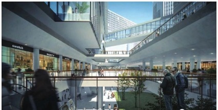 據悉,綜合交通樞紐是“站城一體化”TOD范例,不單起到交通換乘作用,還會引入商業設施,利用密集人流資源,打造城市會客廳。地上100多萬平方米商務建筑,地下一層是城市消費場所,可滿足區域居民生活所需。