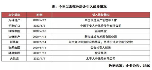 基于以上戰略目標的實現,房企在戰投的引入上也具有相當的偏向性,從戰投引入主體來看,主要有三大類,一是險資,二是國資,三是互利型房企。
