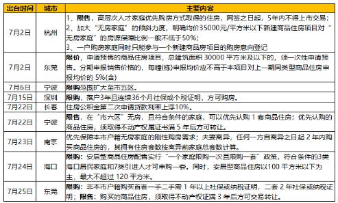 2020.07主要城市房地產(chǎn)調(diào)控政策一覽