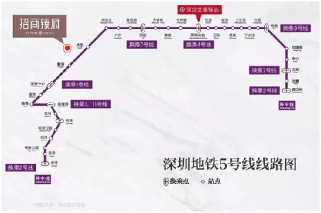 地鐵5號線一期西起前海灣,途徑寶安中心、新安、西麗等重點片區,二期線路北起桂灣站、南至赤灣站,穿越前海蛇口自貿片區,也是深圳第一條在前海片區穿行的地鐵線路。