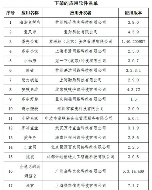 9月14日,工信部網(wǎng)站消息,2020年8月31日,工業(yè)和信息化部向社會通報了101家存在侵害用戶權(quán)益行為APP企業(yè)的名單。截至目前,經(jīng)第三方檢測機構(gòu)核查復檢,尚有海淘免稅店、愛又米、蛋殼公寓等23款APP未按要求完成整改。依據(jù)《網(wǎng)絡(luò)安全法》和《移動智能終端應(yīng)用軟件預置和分發(fā)管理暫行規(guī)定》(工信部信管〔2016〕407號)等法律和規(guī)范性文件要求,工業(yè)和信息化部組織對上述APP進行下架。相關(guān)應(yīng)用商店應(yīng)在本通報發(fā)布后,立即組織對名單中應(yīng)用軟件進行下架處理。