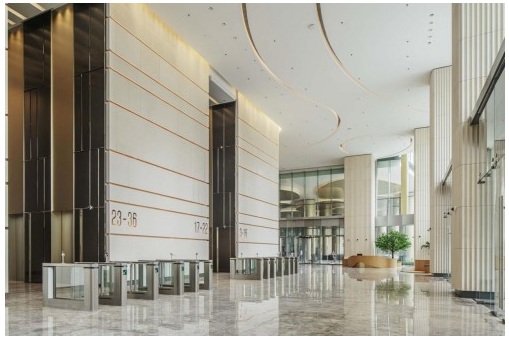 秉持“綠色生態,以人為本”的設計理念,瑞虹企業天地已獲得LEED金級認證和WELL金級預認證,提供生態環保健康舒適的環境。11米挑高大堂彰顯非凡國際品質的同時,打造“城市森林”主題風格,通過原木、竹編及天然綠植等組合方式,將自然、生態引入室內空間,營造輕松溫暖的視覺感受,讓人們自踏入大堂起便能感受到具有歸屬感、溫度感的辦公氛圍。此外,項目還配備了鼓勵綠色出行的單車車庫,盡顯瑞虹企業天地綠色環保的可持續發展理念及人文關懷。