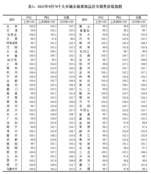 “9月份商品住宅銷售價(jià)格穩(wěn)中有降。”10月20日,國家統(tǒng)計(jì)局公布的數(shù)據(jù)顯示,2021年9月,70個(gè)大中城市商品住宅銷售價(jià)格環(huán)比總體呈略降態(tài)勢(shì),同比漲幅持續(xù)回落。