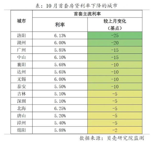 貝殼研究院認為,9月底,央行貨幣政策委員會召開2021年第三季度例會,提出“維護房地產市場的健康發展,維護住房消費者的合法權益”,10月部分城市銀行下調房貸利率是對“兩個維護”的具體踐行,住房市場信貸環境有所改善。