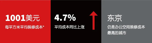 在持續的建造熱潮和勞動力短缺等因素推動下,東京的裝修成本已高達每平方米1927美元,連續第四年成為亞太區裝修成本最高的市場。亞太區的平均裝修成本則約為每平方米1001美元。